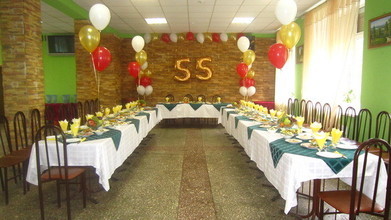 Просторный банкетный зал позволит комфортно расставить столы и стулья и рассадить гостей. Помещение с легкостью вмещает до 80 человек. Его можно красиво украсить шарами, цветами и другой праздничной атрибутикой, организовать танцпол для дискотеки, зону для конкурсов и развлекательной программы.